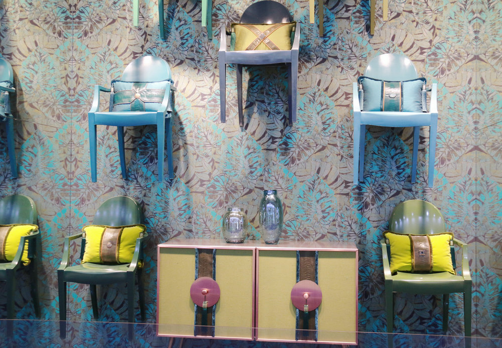 東立設(shè)計(jì)師Marius,試圖為我們打造一個(gè)“新的”經(jīng)典裝飾,他將Philippe Starck設(shè)計(jì)的Louis Ghost椅子,放置在叢林風(fēng)格的壁紙中,構(gòu)成極強(qiáng)的象征主義。