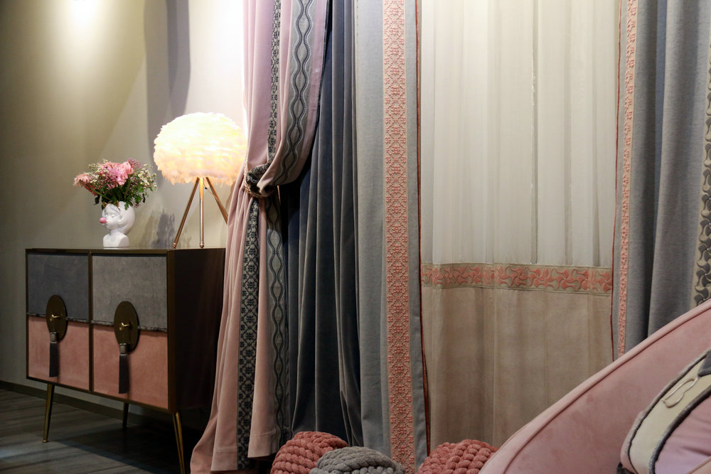 啞光、柔軟的花邊與絨布相搭配,營造出溫馨、舒適、粉嫩的家居氛圍。